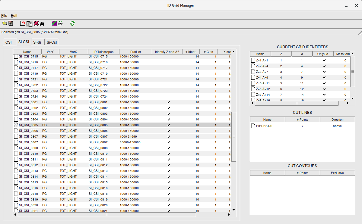 Graphical interface tool for managing, creating, testing and fitting identification grids.